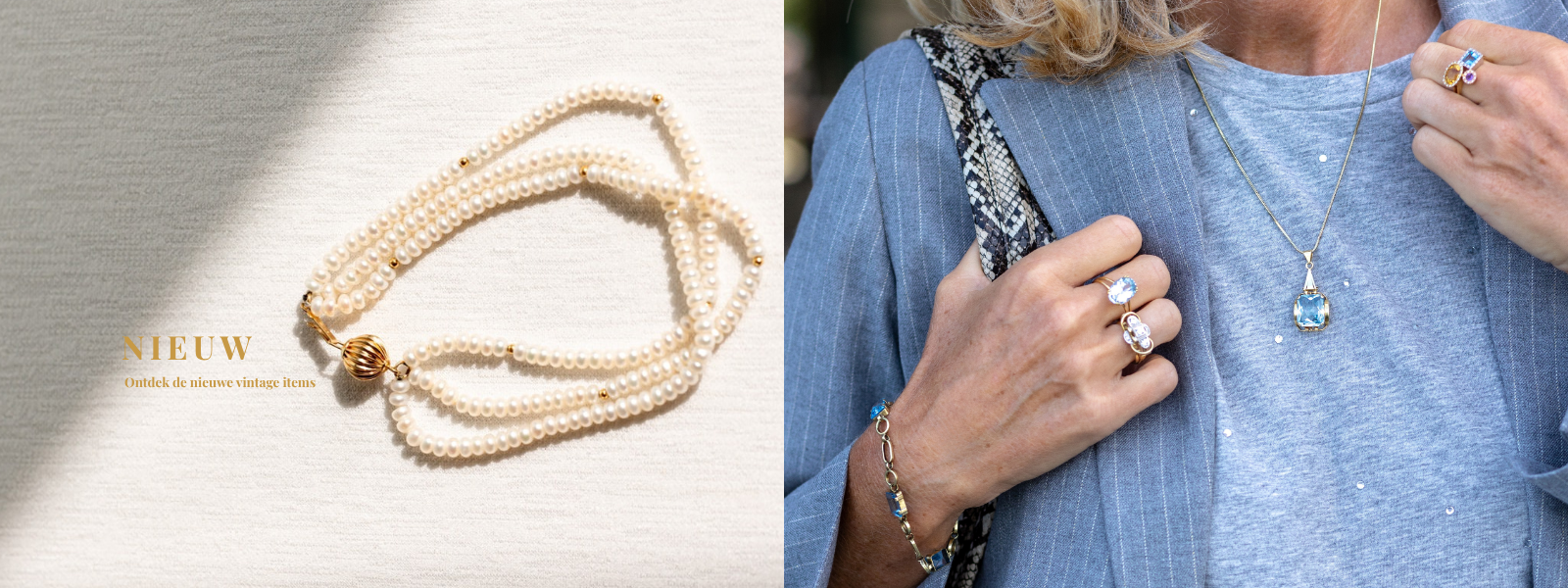 Ontdek unieke juwelen vol geschiedenis en flair – klaar om gedragen te worden en samen met jou een nieuw hoofdstuk te starten.