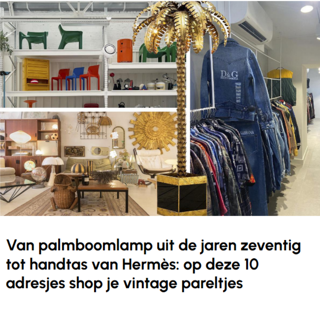 De afvalberg doen krimpen? Shop tweedehands. Op deze adresjes kan je terecht voor allerlei vintage pareltjes. Van een palmboomlamp uit de jaren zeventig tot een handtas van Hermès uit de jaren tachtig.