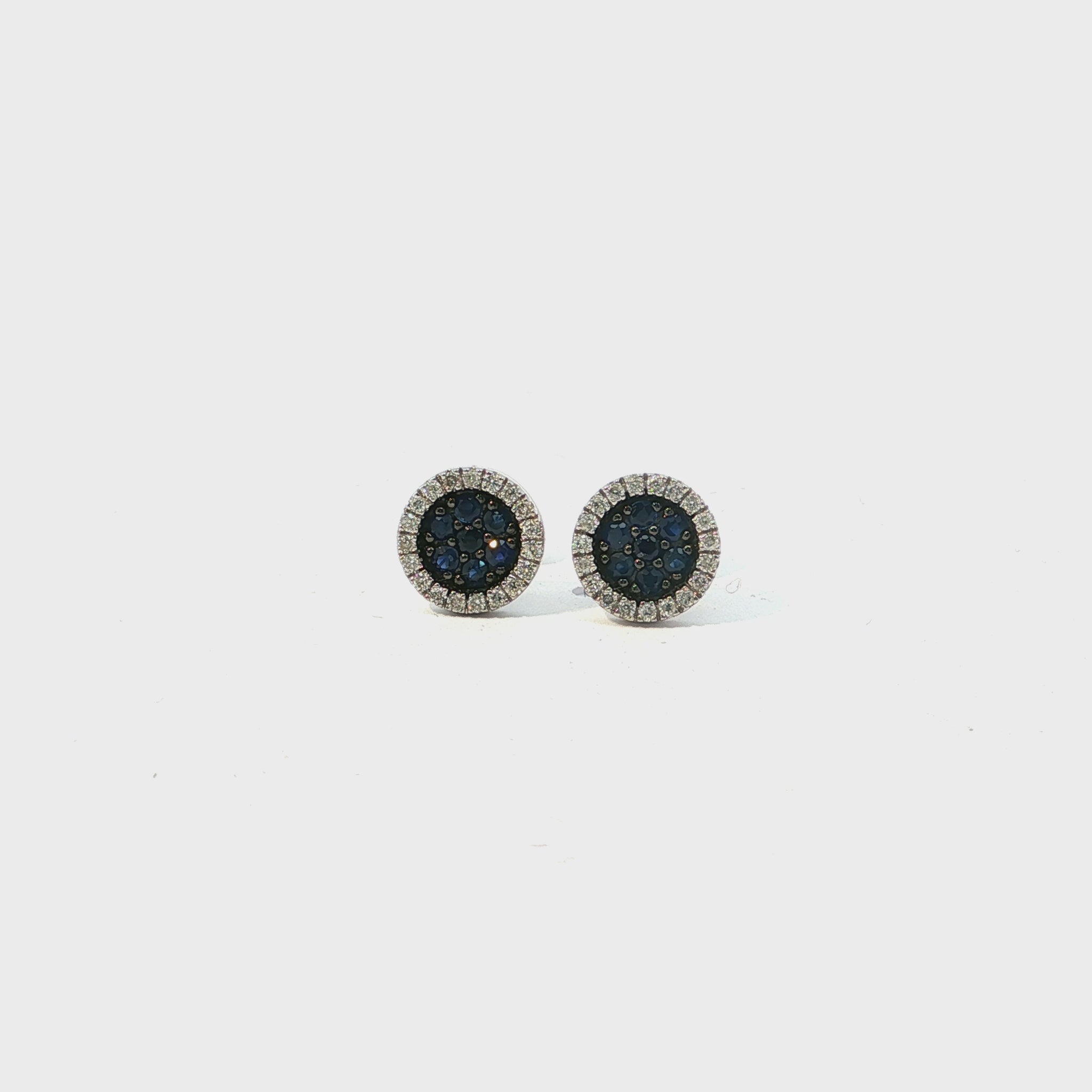 Delphine is een verfijnd paar vintage oorstekers in 18 karaat witgoud, bezet met een centrale cluster van diepblauwe saffieren omringd door een fonkelende halo van diamanten. De ronde vorm, gecombineerd met het contrast tussen het intens blauw en het sprankelende wit, maakt deze oorbellen een tijdloze eyecatcher.