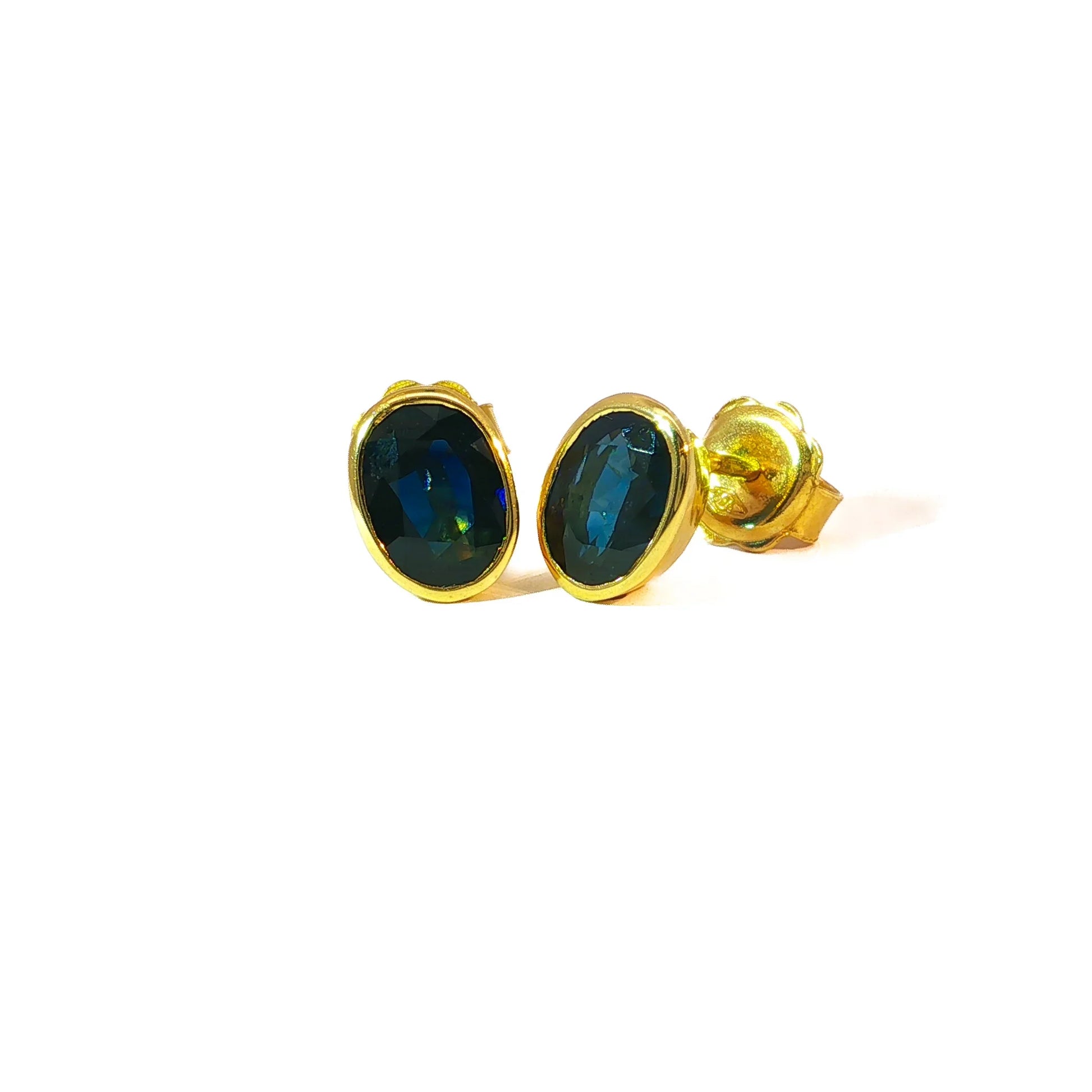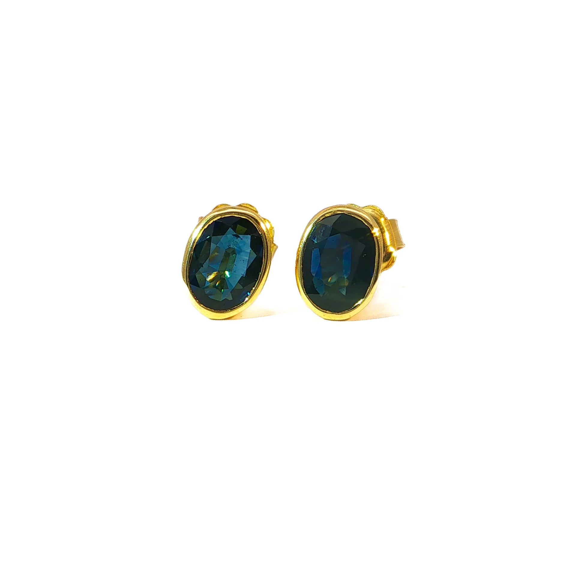 Isolde is een verfijnd paar vintage oorstekers in 18 karaat goud, elk gezet met een diepblauwe ovale saffier in een gesloten zetting. De eenvoud van het ontwerp laat de natuurlijke schoonheid van de saffier volledig tot zijn recht komen. Elegant, klassiek en stijlvol – perfect voor wie houdt van tijdloze luxe met een ingetogen glans.