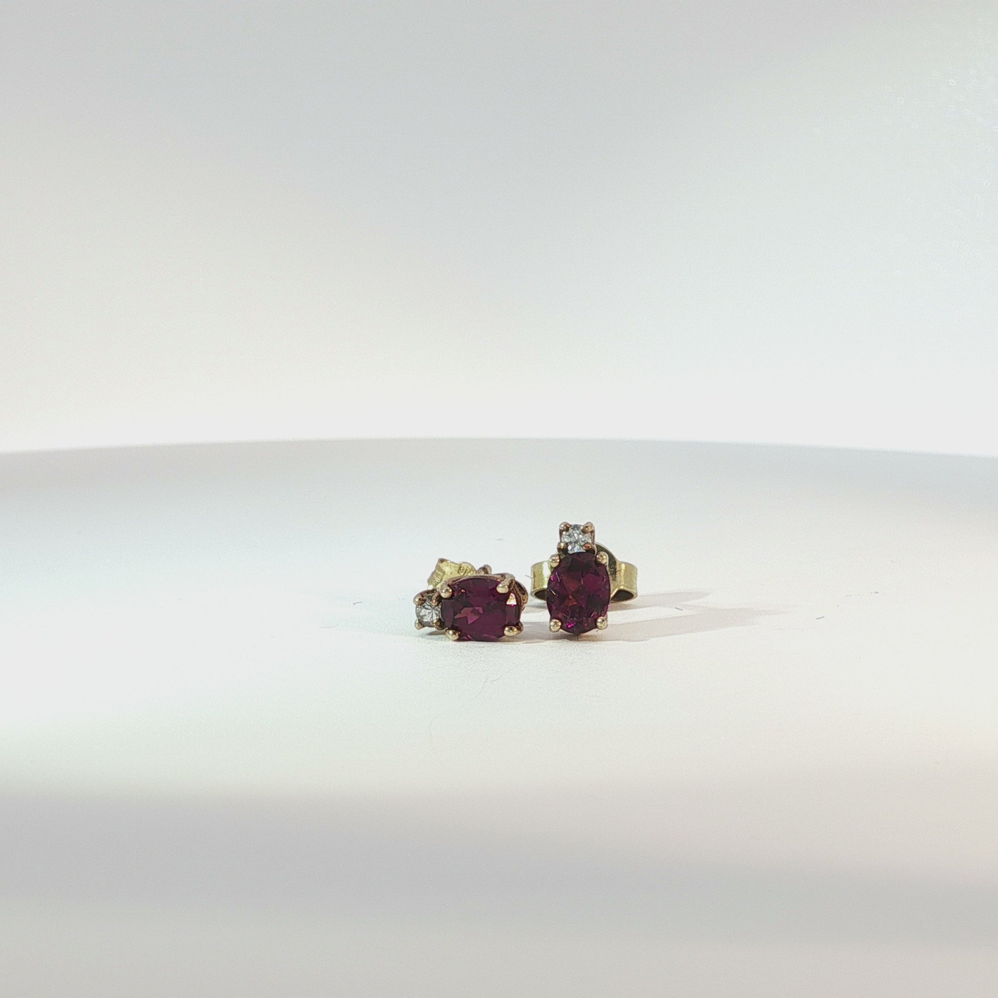 Ondine is een paar elegante vintage oorknopjes die moeiteloos vrouwelijkheid, kleur én subtiliteit combineren. De ovale granaatstenen – diep roze met een vleugje paars – worden geflankeerd door een fonkelende diamant, wat voor een charmante balans tussen warmte en schittering zorgt. Gemonteerd in 8 karaat geelgoud, met een fijne open zetting die het licht prachtig doorlaat.